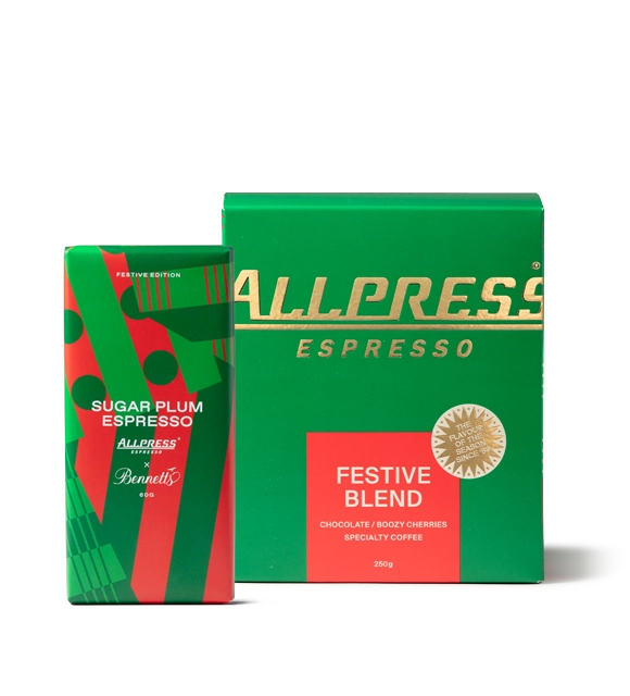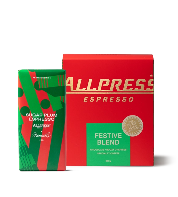 A simple and delicious bundle featuring our limited edition Allpress Espresso x Bennetts Sugar Plum Espresso chocolate plus a 250g bag of our limited edition Festive Blend, the perfect combination for the holidays