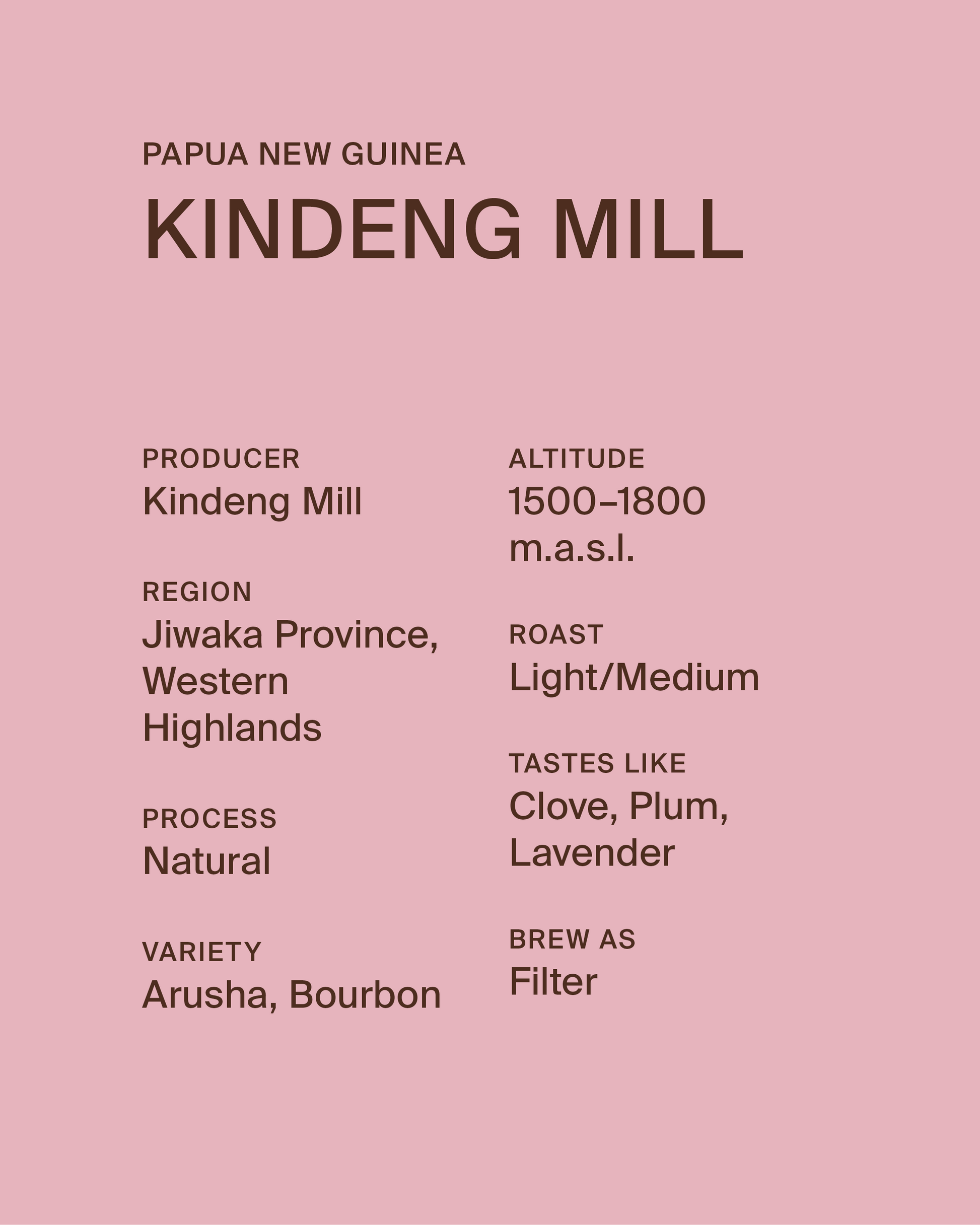 Sourced from the Kindeng Dry Mill in Papua New Guinea’s Jikawa province, this coffee is a true reflection of the region’s rich landscapes and smallholder farming traditions.